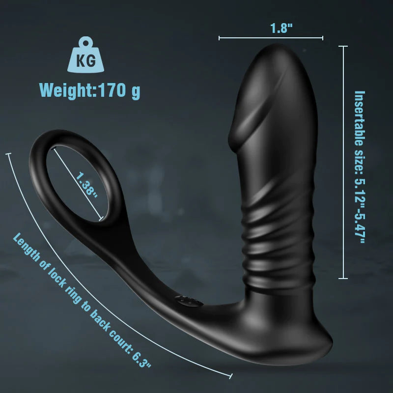 【Multifunctional: 3-in-1 Prostate Vibrator with Penis Ring】 This anal vibrator has 3 different thrusting modes with a maximum thrusting distance of up to 1.5in. It also add 10 vibration modes to spice up your enjoyable time. And this sex toy also has a connected penis ring, which can effectively train the penis, lock the sperm and prolong the pleasant time. 10M remote control can add more interactive fun for couple.